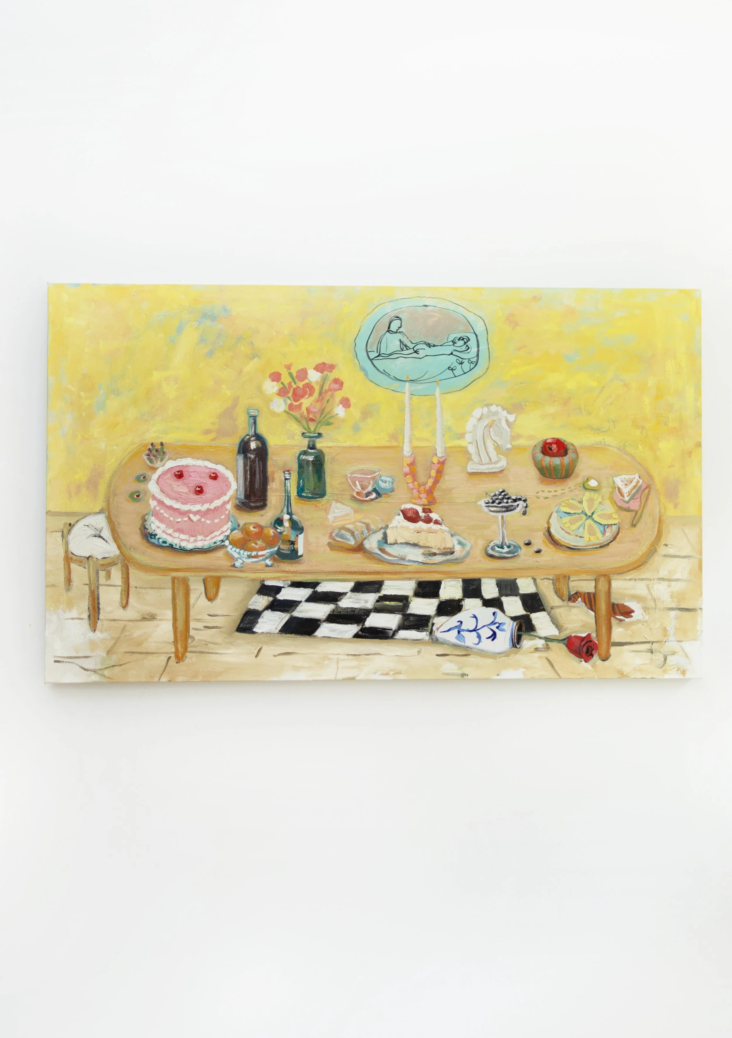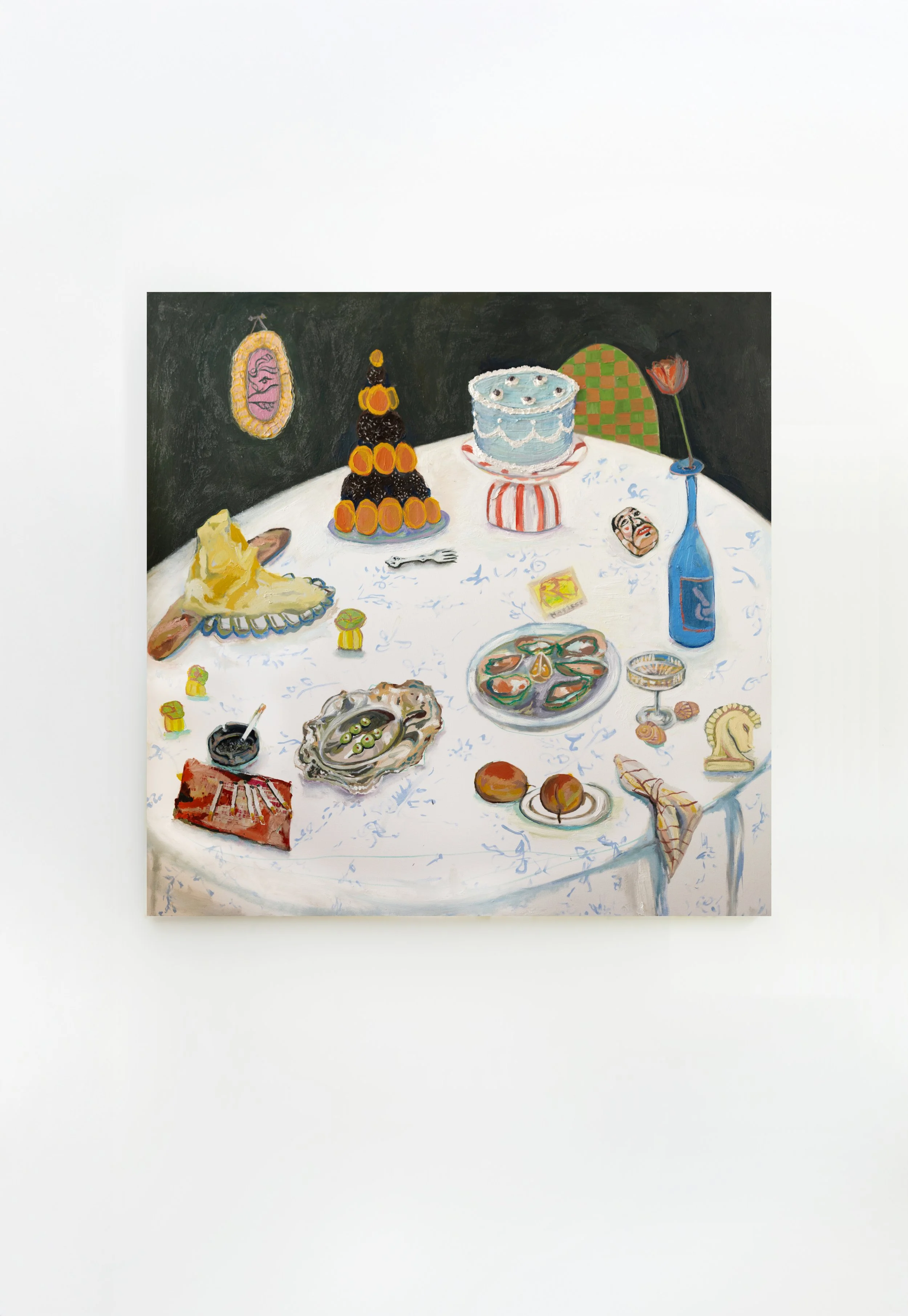 a series of still-life table scape paintings that feature objects containing their own stories